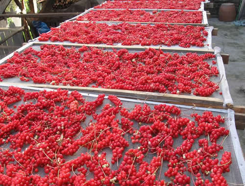 家用型煤柴两用五味子烘干箱:整机包含烘箱,加热炉,控制器,风机,托盘。操作简单,适用各种食品,农副产品,五味子,水果,蔬菜,花茶的多种物料干燥加工。本机省时省工,一人便可生产操作,生产成本低,生产效益高。小型农户作坊选择。煤柴烘干机热效率高,节约能源。利用强制通风作用,箱内设有可调式分风板,物料干燥均匀,热源可采用煤,柴,生物质颗粒选择广泛。整机噪音小,运转平衡。每批次可以烘干100-500公斤以左右,每小时一度电以内,每小时用煤2-3公斤左右。