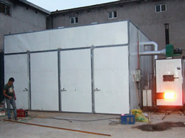 采用功能独特的热源发生装置,保证有足够的热源供给干燥窑,干燥初期由于有大量热源进入室内,加大室内湿度防止物料烘坏。