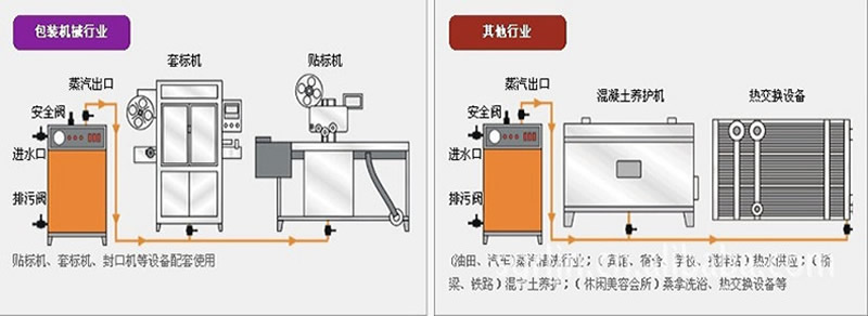食品、化学工业:聚合、缩合、蒸馏、熔融、脱水、强制保温等;油脂工业:脂肪酸蒸馏、油脂分解、浓缩、酯化、真空臭等反应釜加热、合成纤维工业:聚合、熔融、纺丝、延伸、干燥等;纺织印染工作:热定型辊筒加热、烘房加热、热容染色等;非纺织工业:无纺布等;饲料工业:烘干等;塑料及橡胶工业:热压、压延、挤压、硫化成型等。造纸工业:干燥、波纹纸加工等。木材工业:多合板、纤维板加压成型、层压板加热、热压板加热、油压机控温、木材干燥等。建材工业:石膏板烘干、沥青加热、混凝土构件保养等;机械工业:喷漆、印花烘干等;